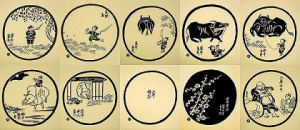 禅の修行と悟りの境地を「逃げだした牛を連れ戻し飼いならす修行の過程」として10段階に分けて分かり易く描いて説明したもの。牛とは我々が求めている真の自己(本来の面目)のことである。