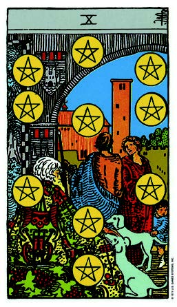 金貨の配置は生命の木の物質界(アッシャー界)を象徴。神のエネルギーが地上に到達、繁栄し豊かになる。