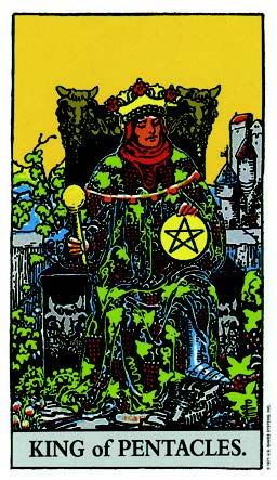 卓越したビジネスセンスと自信に満ちた社会的・金銭的成功者。逆位置では、お金の力で言うことを聞かせるエゴイスト。