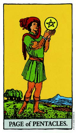 ペイジは生命の木で物質界(アッシャー界)に対応し金貨は地を示す。金貨ペイジは物質界での具体的活動を意味します。